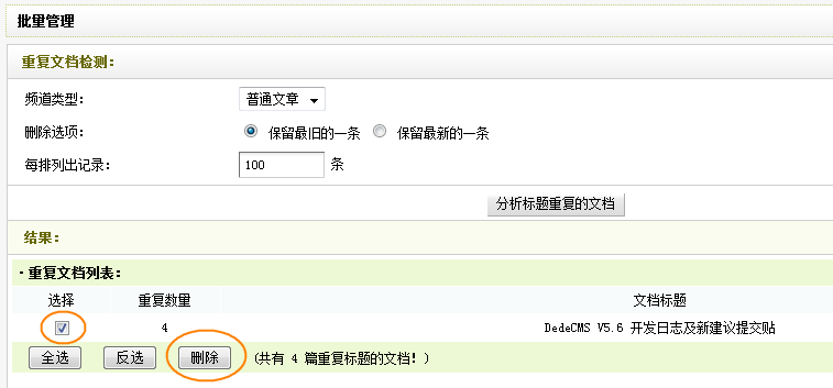 怎样快速删除织梦模板DEDECMS重复文章?