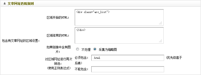 "如果链接中含有图片":设置对链接中含有图片的处理方式,有不处理和采集为缩略图可选。可根据实际需要选择。