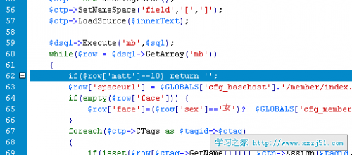 打开include/taglib/memberinfos.lib.php,找到大概62行的代码如下图: