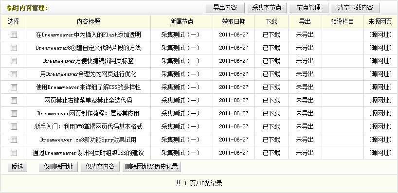 “导出数据”:单击这个按钮,将会进入“采集内容导出”界面,如(图8)所示,