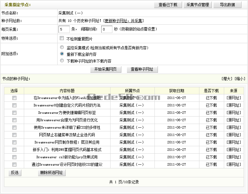 “采集”:单击这个按钮,将会进入“采集指定节点”界面,如(图7)所示,