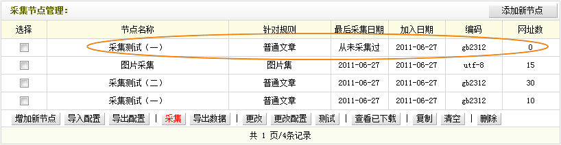 “增加新节点”:单击这个按钮,将会进入新增采集节点界面,在之前的章节中已经介绍过了。