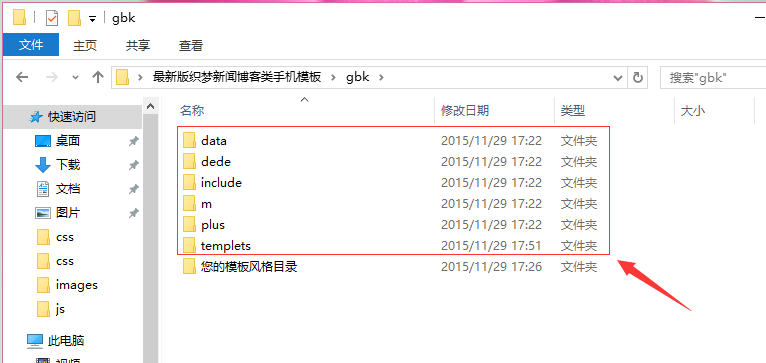 4、打开后把红框里面的文件夹,全部复制到您的站目录。并选择覆盖