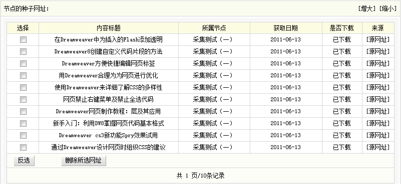 采集结束后,再次单击“查看种子网址”或者单击页面右上角的“查看已下载”,便可看到已采集到的网址信息,如(图37)所示,