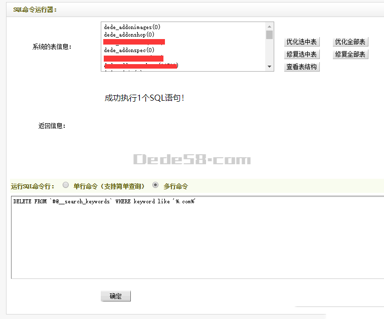 1、先把数据库中已有的网址信息清除掉,因为我看了网站中的搜索词多是.com结尾的网站,当然如果您的搜索词中有其他后缀的网址,可以自行改下sql语句,我是直接在sql命令行工具中执行以下sql语句: