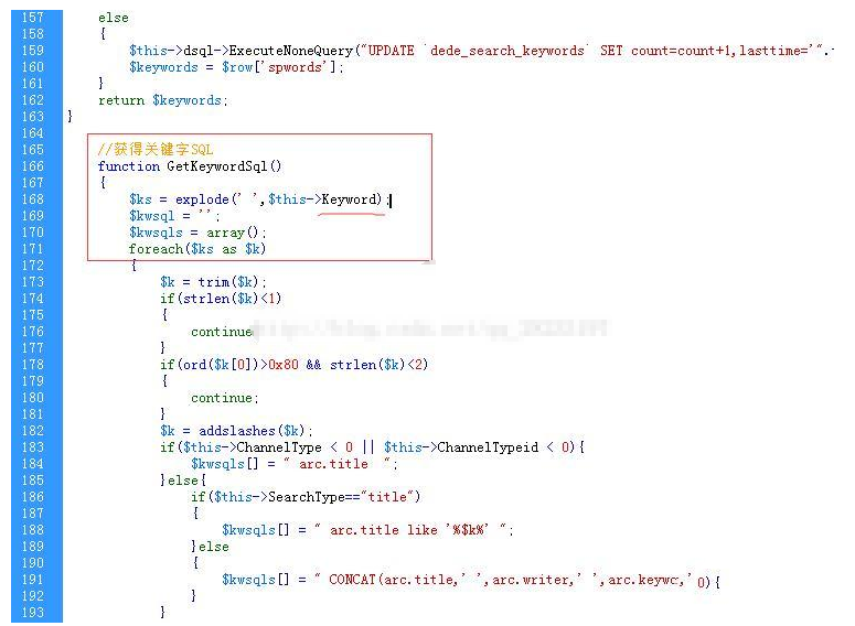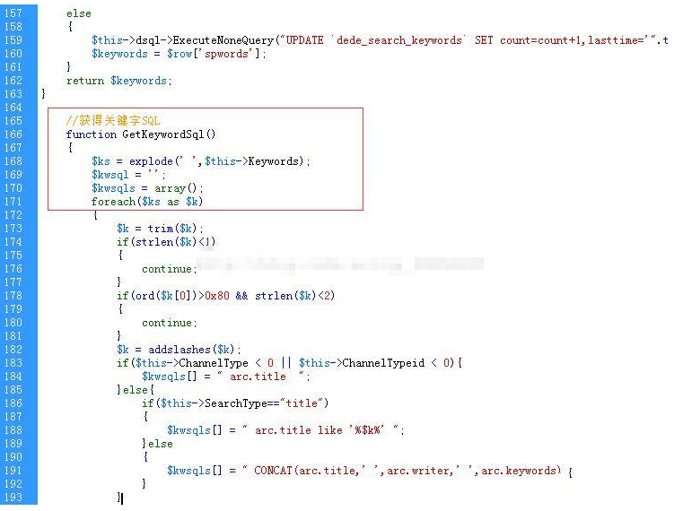 找到“//获取关键字SQL”这里的函数