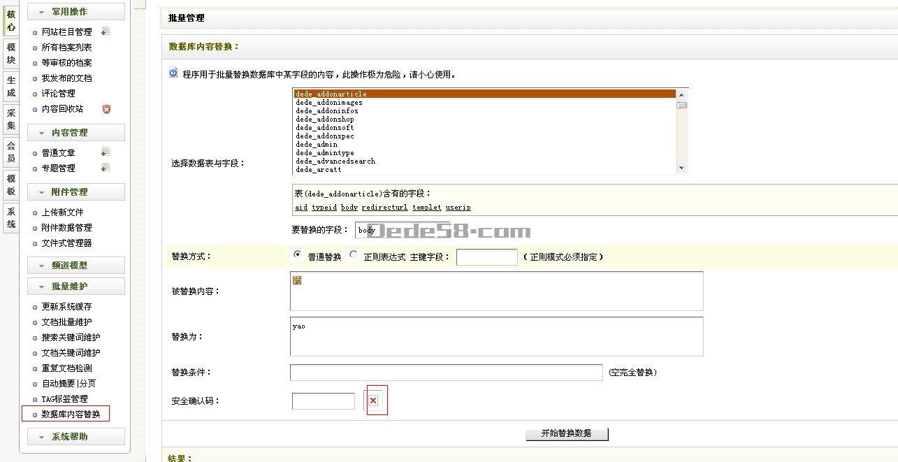 织梦dedecms后台采集数据库批量替换安全确认码不显示完美解决方法如下。