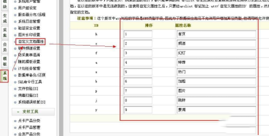 在自定义属性管理中,可以更改属性的排序、属性名称,如果要更改属性的id ,那就涉及到数据库的更改了。