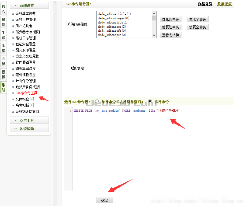 后台-SQL命令行工具-执行下面这句