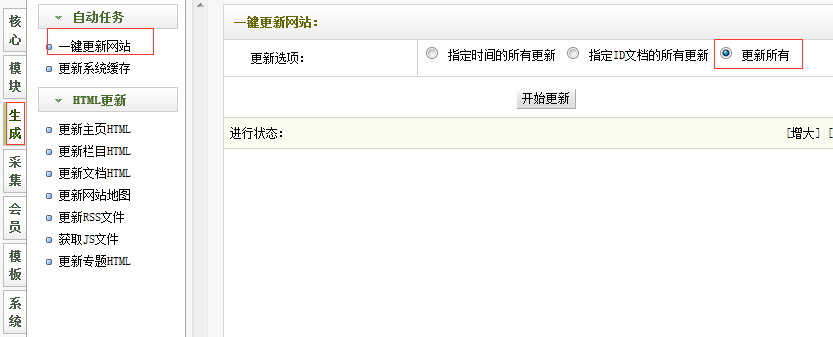 因为是首次更新,所以要更新所有!(最好单独更新主页HTML 、更新栏目HTML、更新文档HTML)