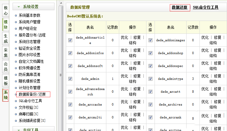 解释:因为哆啦织梦在测试的时候用的都是admin,所以数据库备份后的账号密码都是admin,当你进行数据库还原后,账号和密码就都恢复到了admin,不再是你安装时候填写的账号和密码。所以数据库后还原后,大家需要修改密码。