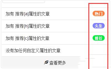 但是有的时候,仅仅调用一类属性的文章并不是我们想要的,如果我们想要在文章列表中把一些加了属性的文章突出来,并在文章标题后面加上对应的属性文字或图标,上面这个方法就不适用了。
