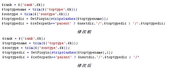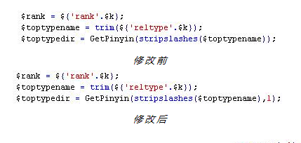 $toptypedir = GetPinyin(stripslashes($toptypename),1);