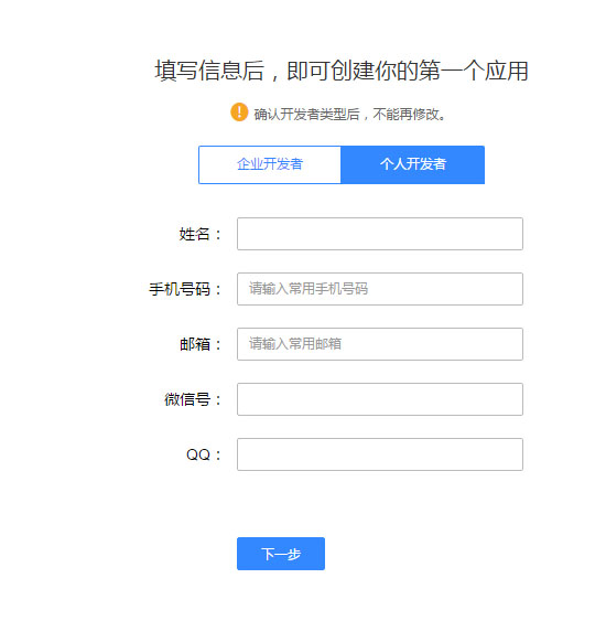 3.用刚才注册的账号登录有赞云,并完善信息,点击“下一步”