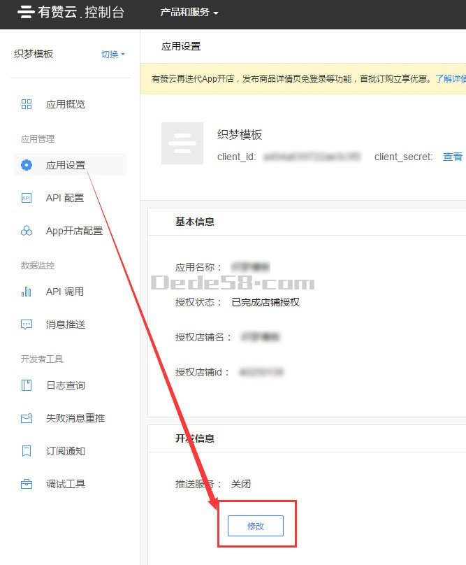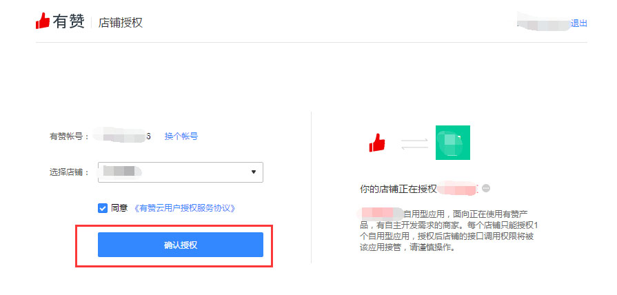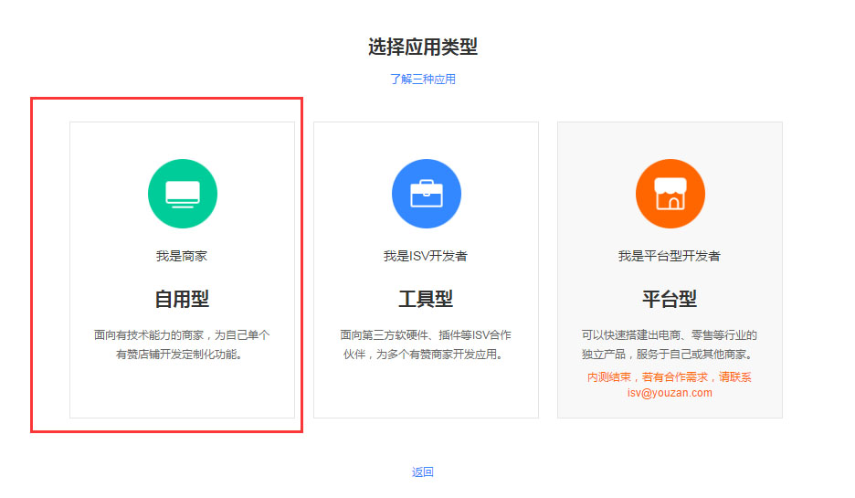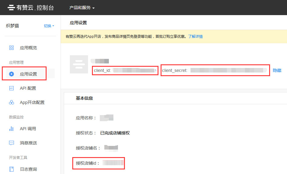 8.回到有赞云,选择刚创建的应用