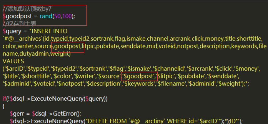 $query = "INSERT INTO `dede_archives`(id,typeid,typeid2,sortrank,flag,ismake,channel,arcrank,click,money,title,shorttitle,