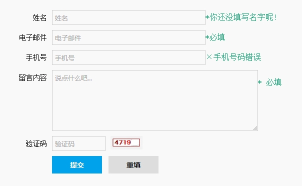 分享一款织梦验证提示信息的自定义表单验证js代码,支持姓名验证,电子邮箱验证,手机号码验证,文本验证,验证码验证等表单代码。大家可以根据自己的需要进行扩展使用,在提交表单之前会进行验证,首先验证四项是否为空,再逐个验证是否否和规范,很实用。