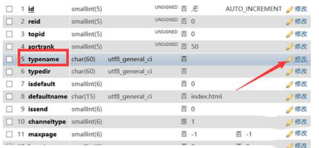 5、找到typename字段,并且点击右侧的【修改】