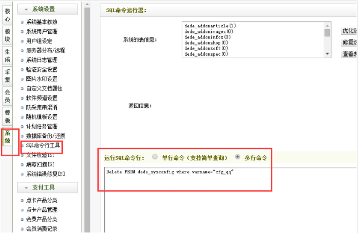打开织梦后台-系统-SQL命令行工具,打开工具界面