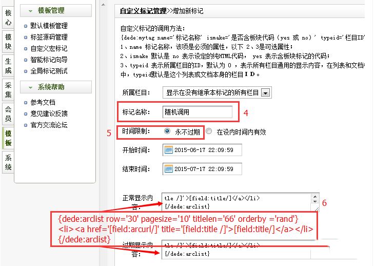 1、登陆后台-->模板-->自定义宏标记-->增加一个标记