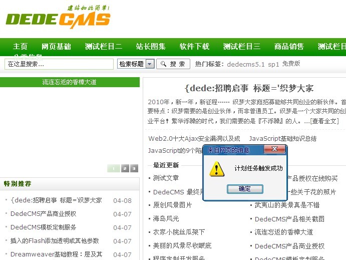 访问首页提示计划任务触发成功 如图: