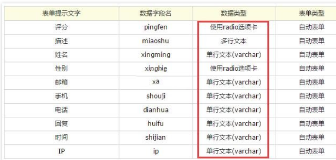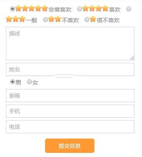前台还可以采用星星评价效果,比如自定义表单的字段pingfen,数据类型为radio,前台增加星星就好,样式自己发挥了。