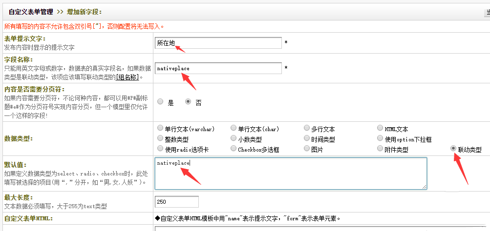 同样,打开 dede/templets/diy_field_edit.htm 文件,找到: