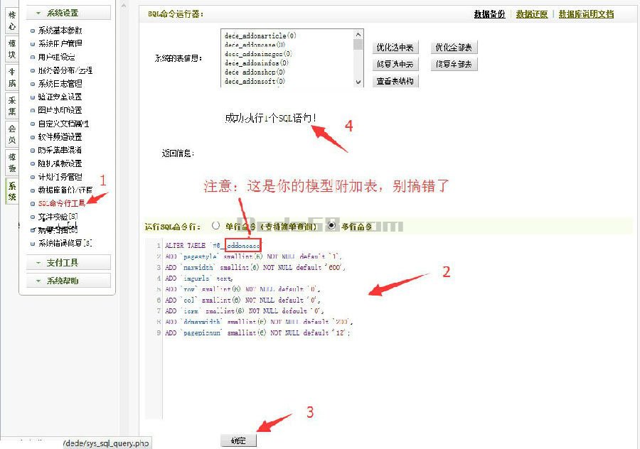3-2、后台-系统-SQL命令行工具,执行如下语句,注意你的附加表名,千万别搞错了
