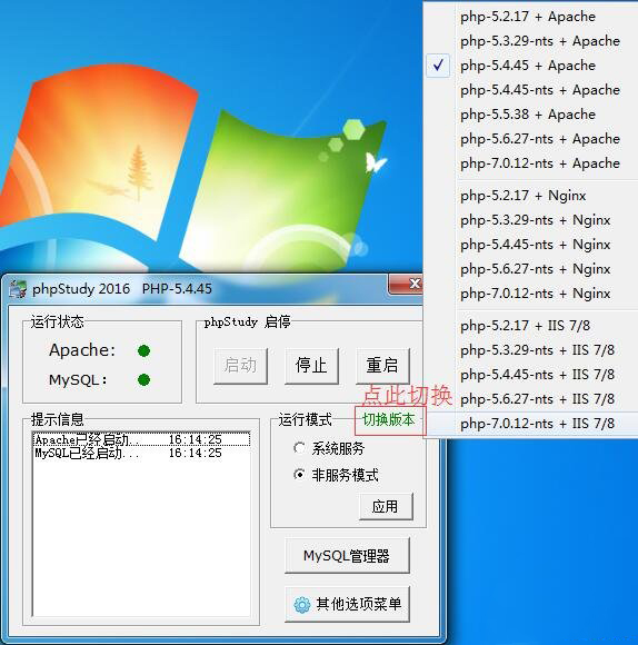一键切换 apache+php