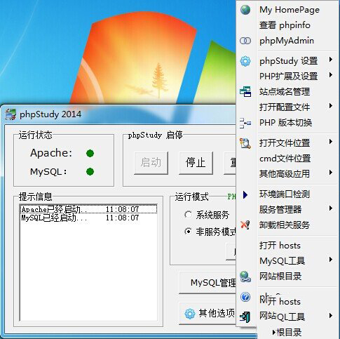 全面适合 Win2000/XP/2003/win7/win8/win2008 操作系统 ,支持Apache、IIS、Nginx和LightTPD。
