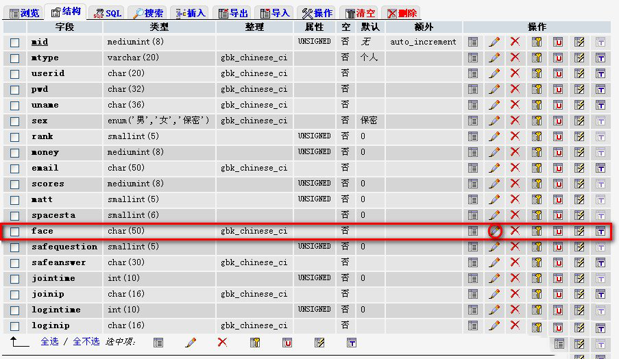 修改会员中心默认的会员中心member表face字段,有两种方式:
