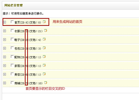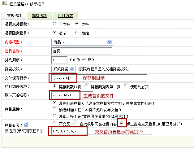 (1)交叉的id只能写最后一级的栏目id,就是你文章的隶属栏目id;
