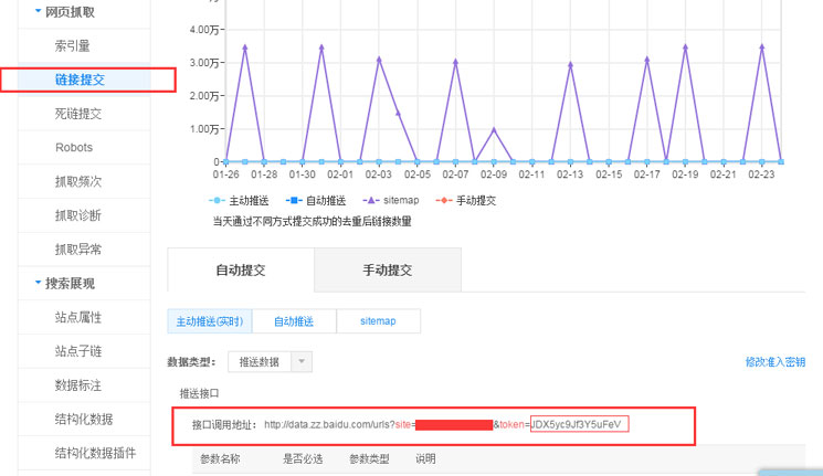 说明:这个里边的数值,大家需要自己在百度站长平台获取,注册--添加你的网站--左侧找到链接提交,就会看到了。截一张图看看。