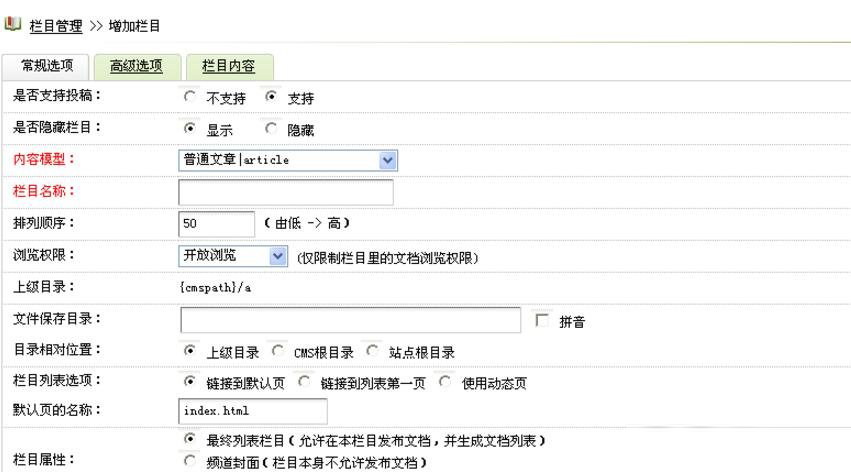 下图是点击“添加顶级栏目”后看到的界面,