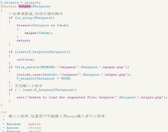 当我们在要调用的文件里面用helper($helper)初始化后,就开始运行上面的代码了。作为一个程序员,既要知道是什么,还要知道为什么,本篇内容由织梦DEDECMS基地作的分析,抛砖引玉,共同进步。