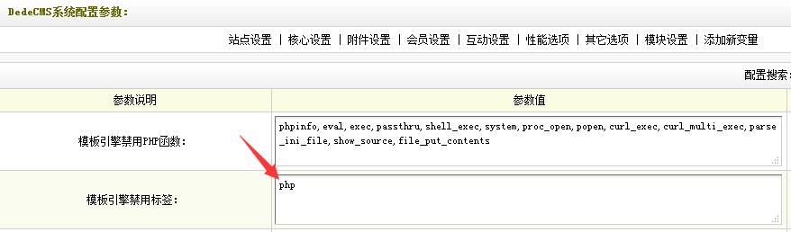 进入织梦dedecms后台——“系统”——“系统基本参数”——“其它选项”,把“模板引擎禁用标签:”参数的参数值“php”删除: