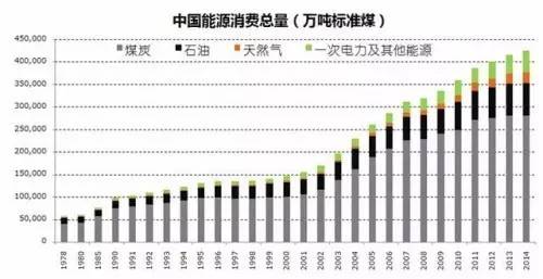 从1978年到2014年,中国能源使用总量增长了9倍。可见,财富增长与能源使用水平密切相关。