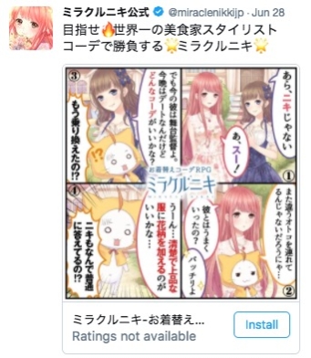 为了更迎合日本本土的玩家的口味,CLICK TECH不仅单只是采用一般素材来做Banner。抓住了暖暖自己的换装主题,使用漫画式的新颖广告风格作为噱头。在提高点击率的同时,保证下载率的增加也是CLICK TECH为暖暖进一步取得更多下载量的方法之一。