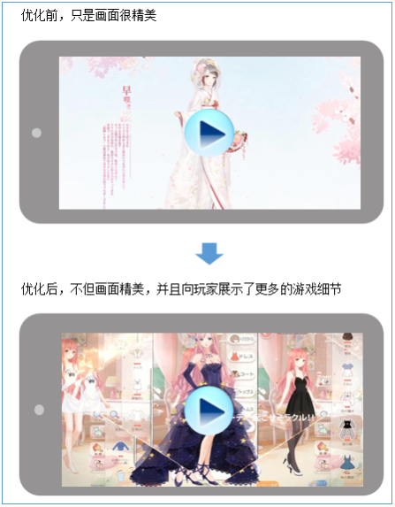 视频广告是一套华丽而极具攻击力的招数,它聚集了《暖暖》核心玩法,绚丽装束,以动感的形态展示在用户面前,魅力十足。经过分析,调整投放策略,利用玩家真实gameplay为核心内容,配合视频配景优化,制作创意素材进行视频投放,整体点击率提升至超过20% ,次日留存率大幅提升至65%。