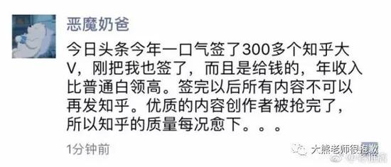 近来伴侣圈除了被腾讯卖画刷屏,剩下的就是在讨论今日头条签约 300 知乎大V的传言了。传言大概意思是今日头条以高于一般白领的价格买断了 300 个知乎大v,让他们只能在头条的悟空问答上回答问题。当然,头条后来体现,不会限制答题者的平台,而知乎则体现,知识无价,高质量分享无法被流水线化定价。更多的人则调侃道,知乎用户平均年薪百万能看上这点钱?