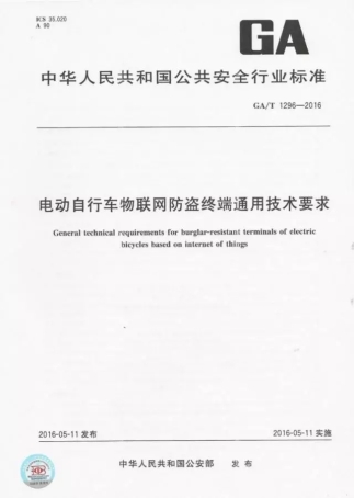 而现在,为了更进一步维护好电动车领域的秩序,近日,由公安部安适与警用电子产品质量检测中心、中国信息通信研究院、雅迪集团、中国移动等单位联合起草的《电动自行车物联网防盗终端通用技术要求》(GA/T1296-2016)正式公布。