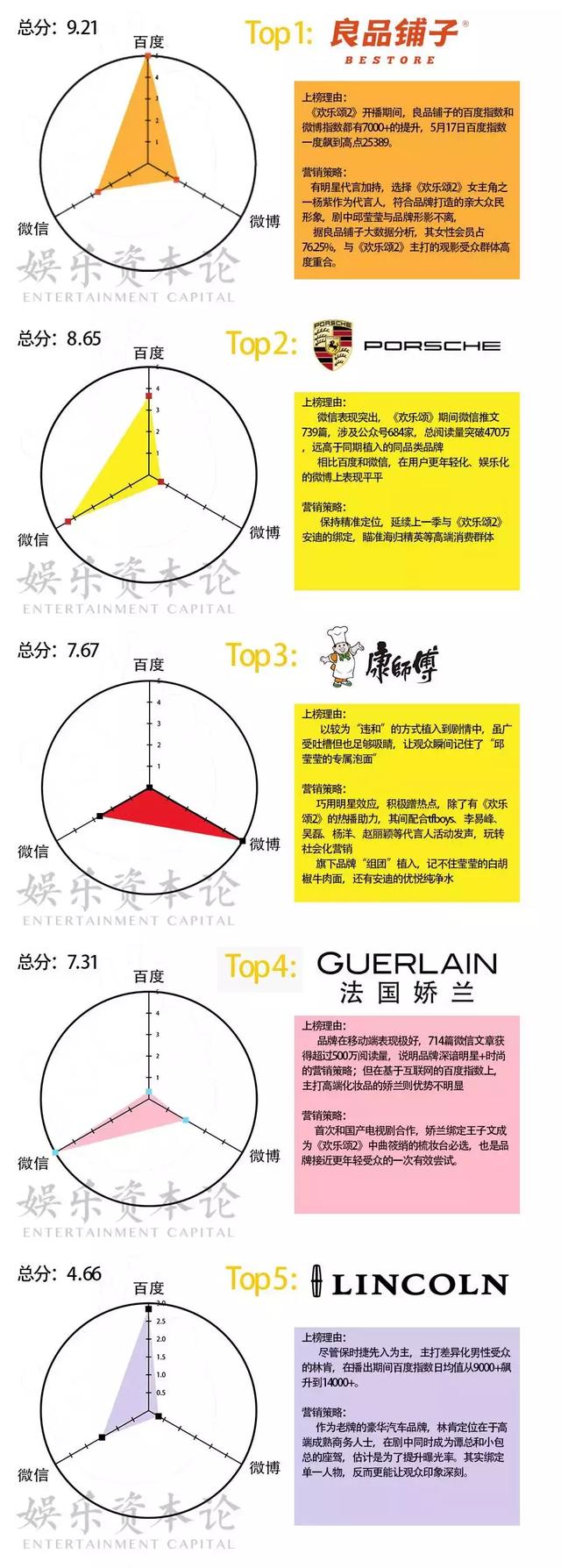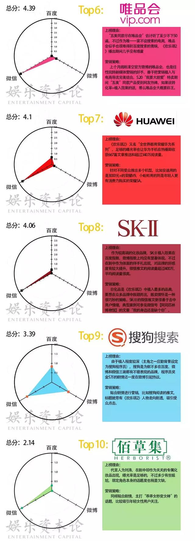 结果发现,同是植入,效果却有天壤之别,甚至还有越植入流量越低的情况。不久不多说,娱乐本钱论还是直接上榜单吧,给各位读者姥爷看看本次《欢乐颂2》品牌植入Top10,以及倒数Top5。