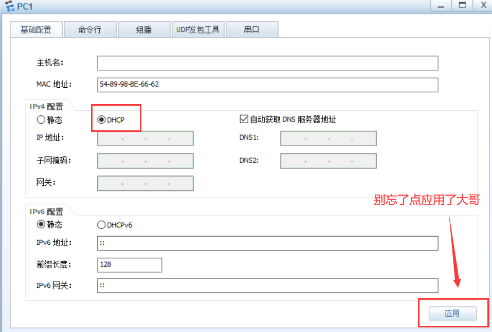 1.使用 DHCP 动态的给 PC 机分配 IP 地址