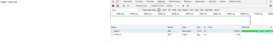 上面的代码实现了一个异步的Servlet,实现了 doGet 方法注意在SpringBoot中使用需要再启动类加上 @ServletComponentScan 注解来扫描Servlet。既然代码写好了,我们来看看实际运行效果。