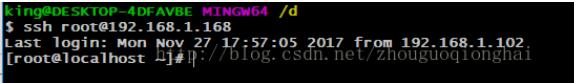 便可以使用 ssh root@192.168.1.168 登录: