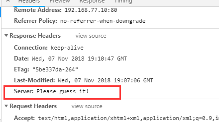 [root@node1 nginx-1.14.1]# curl -I http://127.0.0.1 HTTP/1.1 200 OK Server: Please guess it! Date: Wed, 07 Nov 2018 19:15:43 GMT
