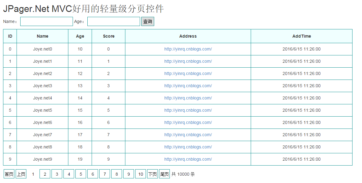JPager.Net MVC好用的轻量级分页控件,代码精心推敲,经多人反复建议修改,最终成型使用中。非常好用分享给大家。源代码一共放出来。先上个效果图: