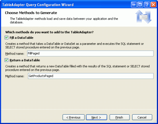 下一步会要我们选择要调用的存储过程.从下拉列表里选择GetProductsPaged .