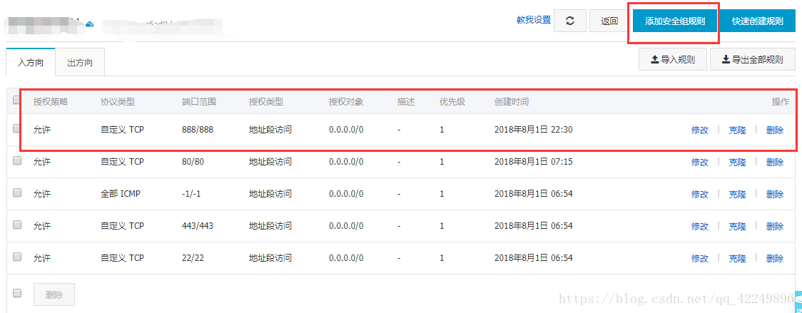 当我们进phpmyadmin的时候,端口默认为888,这时,我们就要检查宝塔面板和阿里云(我是在阿里云买的服务器。或腾讯云等)控制器里的安全组的888端口是否开放。