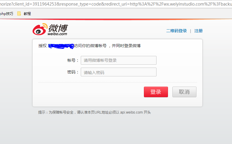 PHP调用微博接口实现微博登录的方法示例